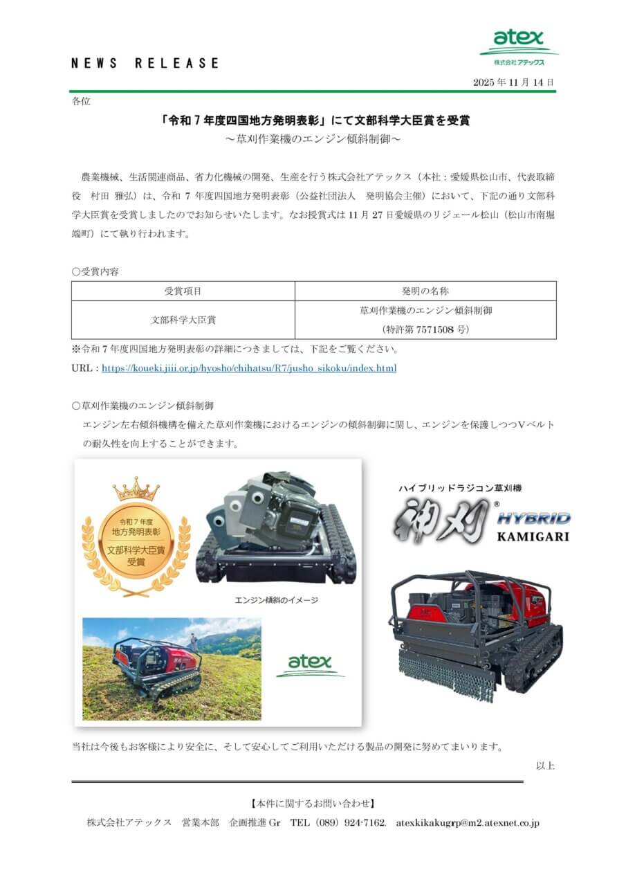 「令和7年度四国地方発明表彰」にて文部科学大臣賞を受賞しました